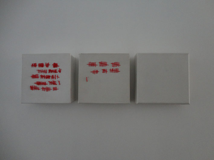 DSC01451 Published 1 Abril 2013 at 709 × 531 in DSC01451 ÁGUEDA FERRÃO À espera do outono, Exemplar #1; tinta branca, linha de bordado vermelha, impressão em carimbo; 03 telas 10×10 x 4cm (cada),2011-2012, R$ 600,00 Compartilhe: Email a link to a friend (Abre numa nova janela) E-mail Tweet Share on WhatsApp (Abre numa nova janela) WhatsApp Gosto Carregando...