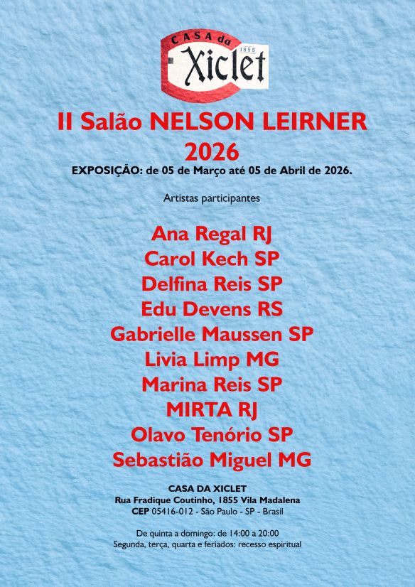 A Galeria Casa da Xiclet apresenta o II Salão Nelson Leirner 2026, uma exposição que presta homenagem a Nelson Leirner, artista fundamental da arte brasileira, mestre, influenciador e presença afetiva decisiva para diferentes gerações.